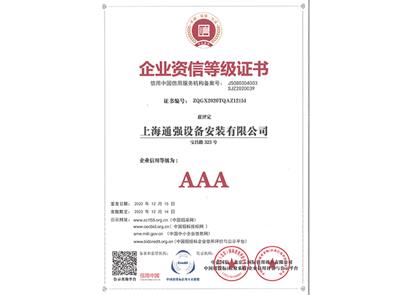 上海通強設(shè)備安裝有限公司注冊資金2000萬元,資產(chǎn)總量為100000萬元的專業(yè)設(shè)備安裝公司,公司專業(yè)從事工業(yè)與民用建筑的設(shè)備安裝、非標設(shè)備的制作、鋼結(jié)構(gòu)制作安裝、中央空調(diào)系統(tǒng)的安裝,水電及管道的安裝。經(jīng)過20多年艱苦創(chuàng)業(yè)現(xiàn)已成為一個具有國家二級安裝資質(zhì),獲得上海市“重合同,守信用”的施工單位。